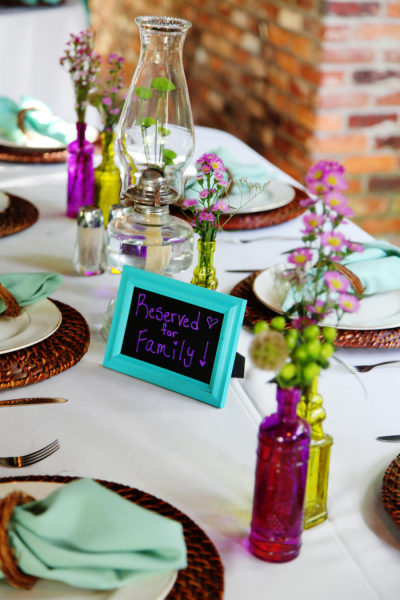 Se repararem, tudo nesta decoração é simples! Não há um único objecto elaborado. Com objectos básicos do nosso quotidiano, um pouco de imaginação e habilidade manual consegue-se ter um casamento único com pormenores com muita personalidade!